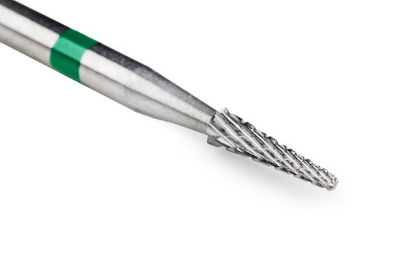 Frez z oznaczeniem -ZIELONYM- posiada grube krzyżowe cięcia.